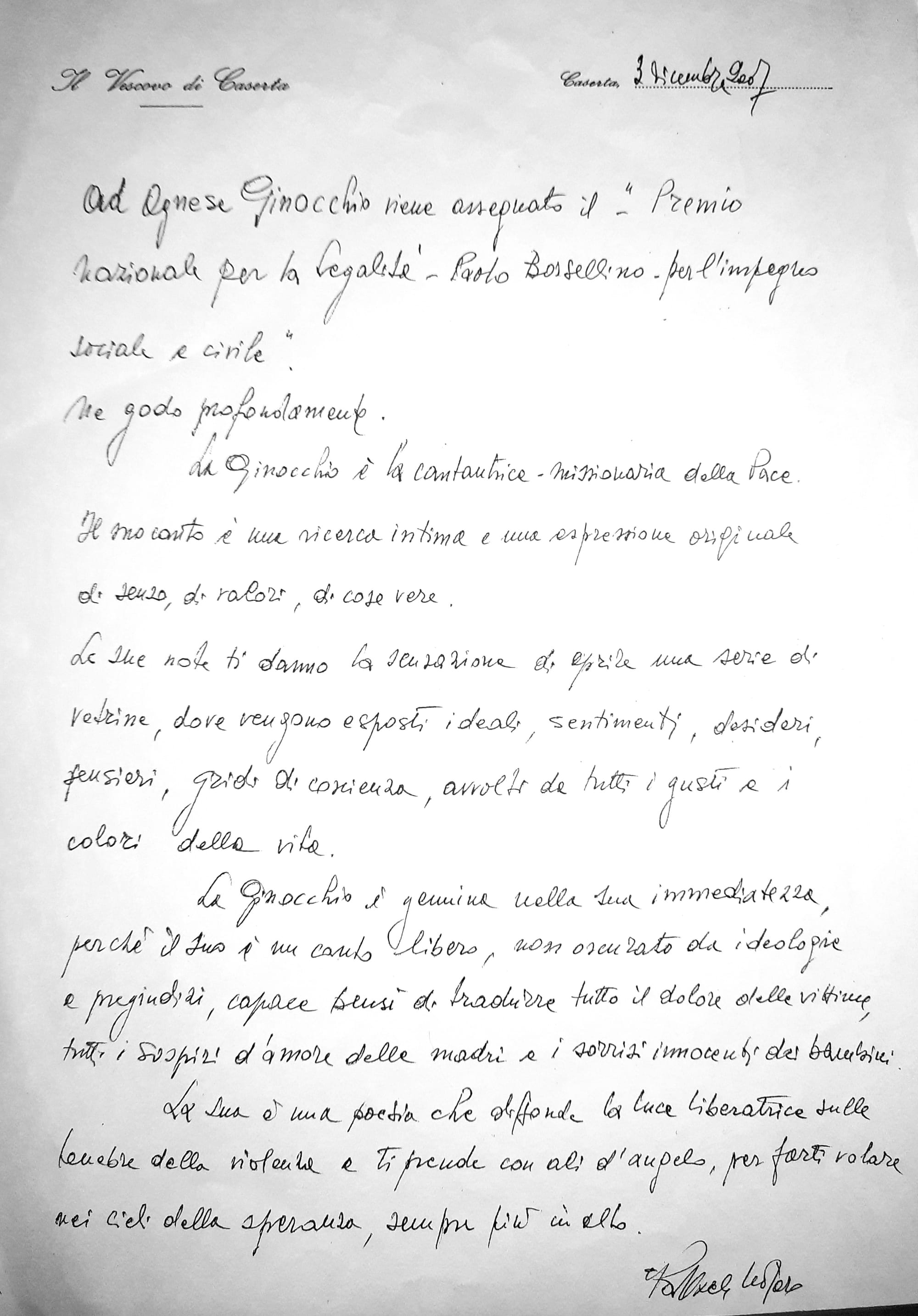 la Pace” ( leggi e vedi qui)  dedicato alla memoria del compianto vescovo di Caserta Raffaele Nogaro.